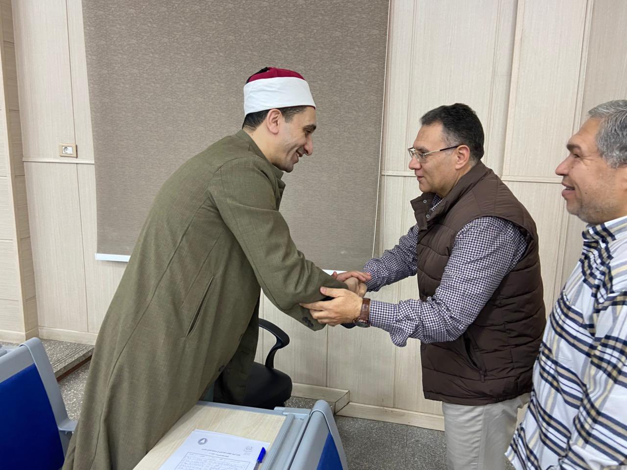 وفي اليوم الثاني من المسابقة، حرص السيد الأستاذ الدكتور عمرو نزيه عزت وكيل الكلية لشؤون التعليم والطلاب على تفقد سير الفعاليات، حيث أشاد بأداء الطلاب ومدى حرصهم على المشاركة في الأنشطة الطلابية، مؤكدًا أهمية المسابقة في تعزيز الروح الدينية الإيجابية وتشجيع الطلاب على حفظ القرآن الكريم وإتقان تلاوته.