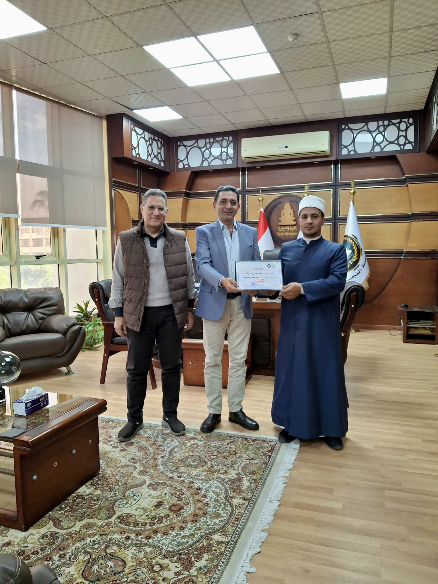 وفي ختام فعاليات الندوة، قام أ.د أحمد كمال مطاوع عميد الكلية، وأ.د عمرو نزيه عزت وكيل الكلية لشؤون التعليم والطلاب، بتقديم شهادات التقدير للمحاضرين تقديرًا لجهودهم القيمة في توعية الطلاب وتعزيز التعاون المثمر بين جامعة المنصورة والأزهر الشريف.