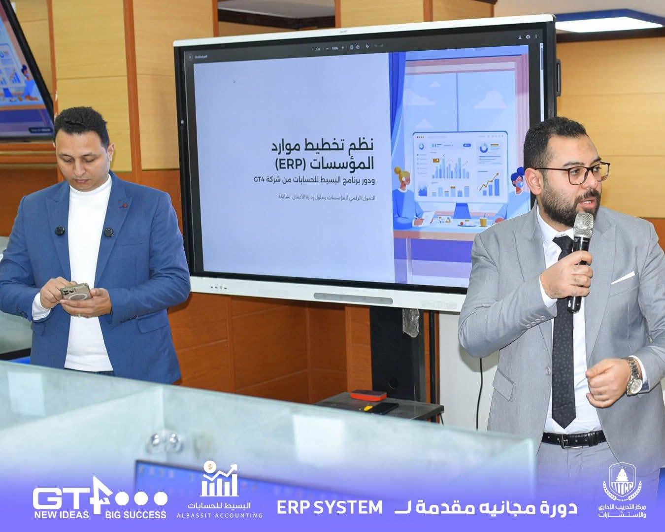 تحت رعاية الأستاذ الدكتور أحمد كمال مطاوع عميد كلية التجارة، وبريادة الدكتور عصام مسعد مدير مركز التدريب الإداري والاستشارات بالكلية، وبالتنفيذ والتقديم من الدكتور شريف عنتر رئيس مجلس إدارة شركة GT4 للبرمجيات، اختتمت كلية التجارة بجامعة المنصورة فعاليات ورشة العمل المتخصصة في شرح أساسيات أنظمة تخطيط موارد المؤسسات (ERP)، مع تطبيق عملي على برنامج البسيط للحسابات.