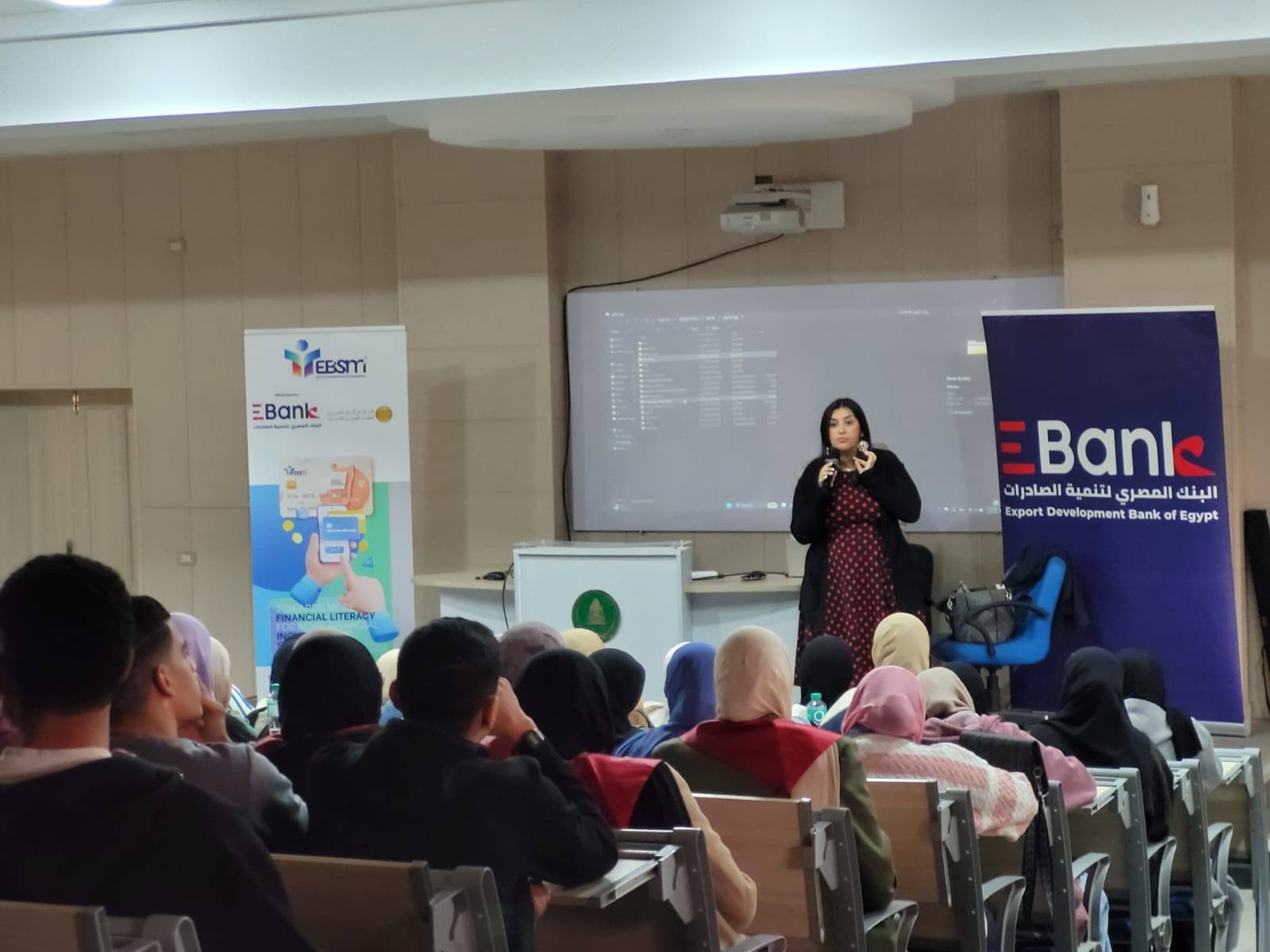 كما شاركت الأستاذة هديل الشيخ، رئيس قطاع الشمول المالي بالبنك المصري لتنمية الصادرات، بمحاضرة تناولت أهمية التثقيف المالي ودور التكنولوجيا المالية في تطوير القطاع المصرفي، مؤكدة ضرورة تأهيل الطلاب بالمهارات الرقمية الحديثة التي تعزز فرصهم في سوق العمل.