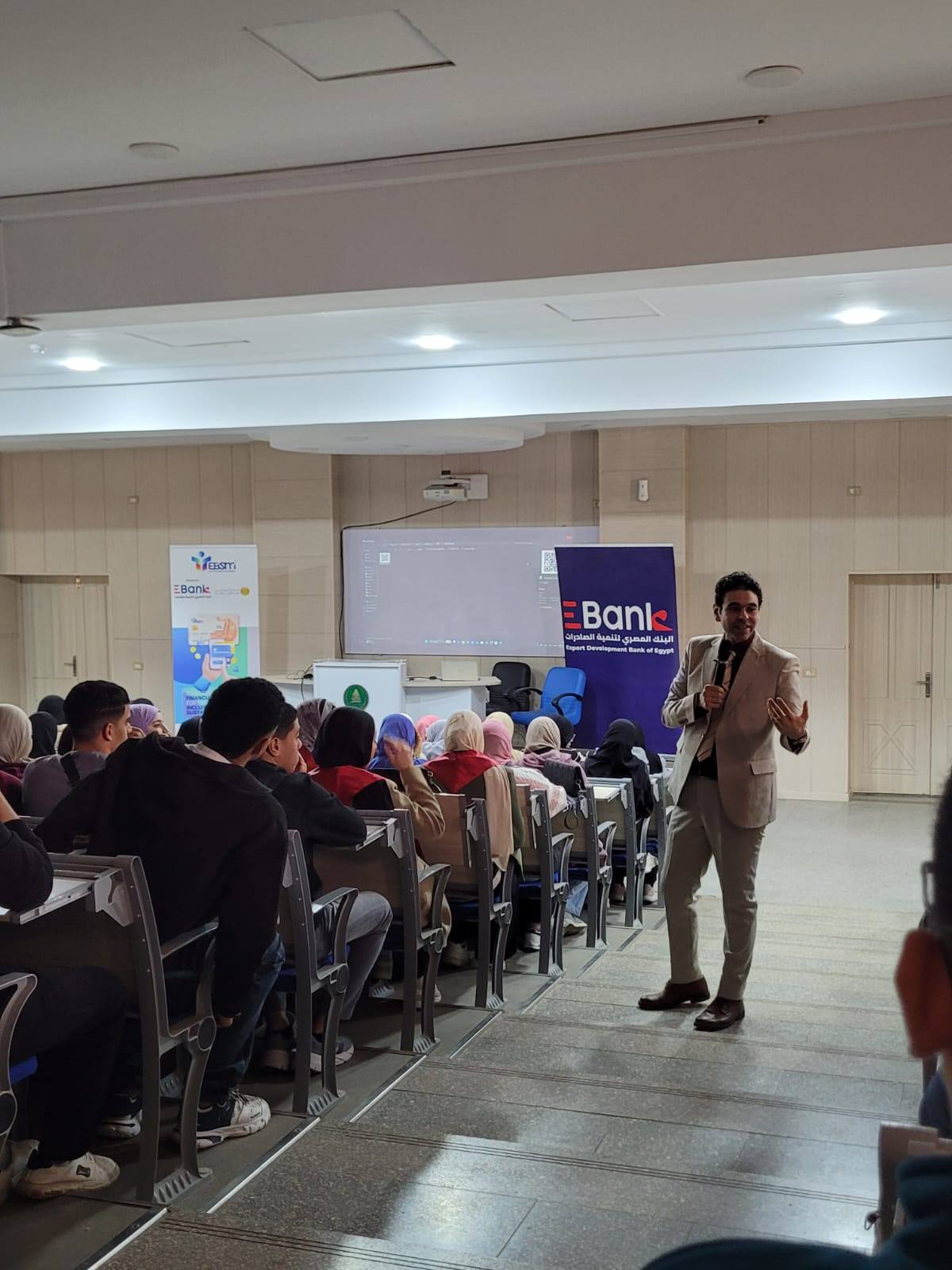 وتناولت المحاضرات التعريف بأنظمة العمل المصرفي الحديثة، والمهارات الواجب توافرها في خريجي كليات التجارة الراغبين في العمل بالقطاع البنكي، خاصة في ظل التحول الرقمي المتسارع الذي يشهده القطاع المالي. وقد حاضر في الفعالية الأستاذ أحمد علام من إدارة رواد النيل بالبنك المصري لتنمية الصادرات، حيث استعرض آليات العمل المصرفي والتحديات والفرص المتاحة أمام الشباب.